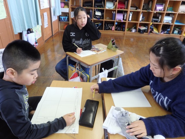 4年生の4時間目は総合の授業でした。学習発表会以後の総合の授業で魚沼の里や八海山あまさけ工場を見学してきましたが、その学びの成果をどんな内容で、どのように発表したらよいか話し合っていました。とてもたくさんの意見が出され、聞いていて「なるほど!」と思うようなアイデアも出されました。発表が楽しみです。