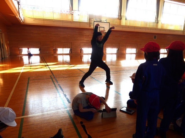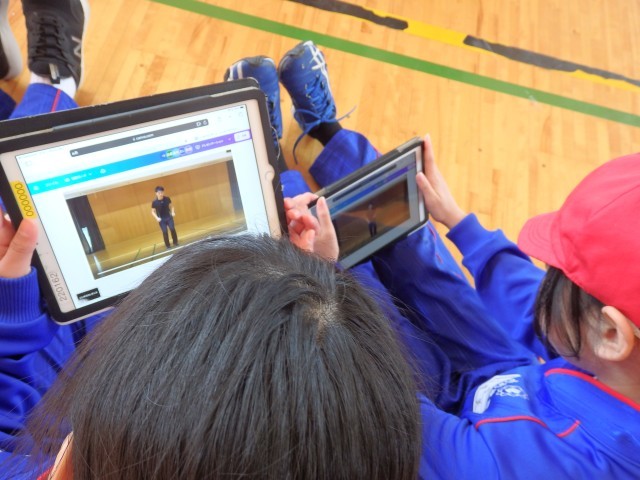 4年生の2時間目は体育の授業でした。今日から「表現ダンス」の学習です。先生からお手本動画が子どもたちのiPadへ送信されました。「ジンギスカン・ダンス」です。保護者の方は知っている方も多いのではないでしょうか。まずは先生が試しに踊って見せてから練習に入りました。iPadで流れる動画を見ながら楽しそうに練習していました。難しいステップもありましたが、軽快に踊る子どもたちでした。