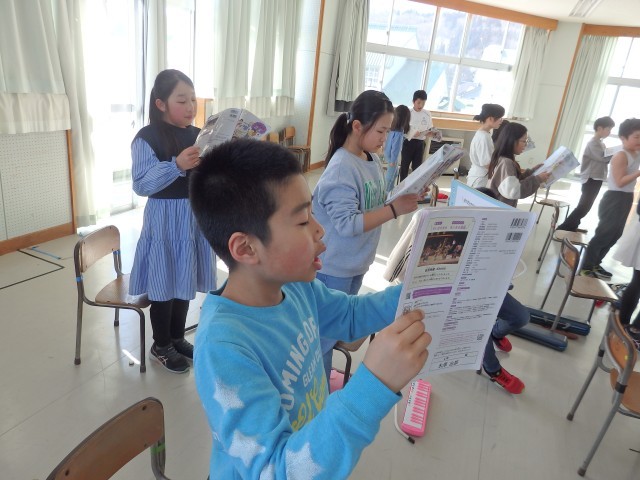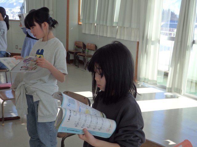 4年生の6時間目は総合の授業でした。魚沼の里や八海山あまさけ工場の見学で学んだことを3月4日の学習参観で発表します。ミニ学習発表会といったところでしょうか。シナリオを作る人、スライド資料を作る人、小道具・大道具を作る人と役割を分担し、協力して取り組んでいました。今度の発表は全て自分たちで作っていくようです。楽しみです。