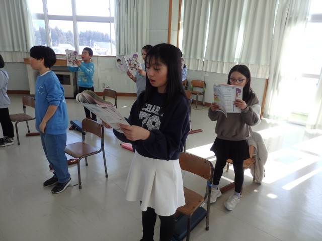 4年生は2時間目に激励会の練習をしました。親善スキー大会の激励会が2月5日に行われます。陸上大会激励会に続き、4年生が全校をリードして進めます。本番どおりの流れで司会のシナリオや動き、応援でのエールなどを練習しました。激励会の計画や運営、リーダーとしての応援などの経験をして、高学年になるステップを登ります。