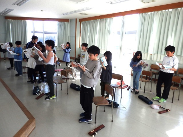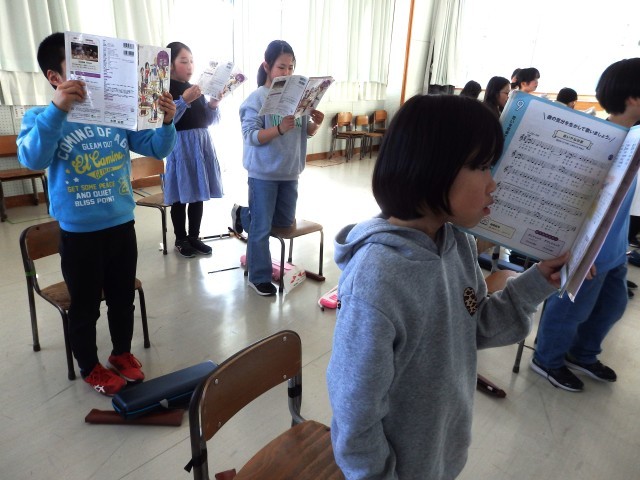 4年生の5時間目は音楽の授業でした。音楽室のドアは閉まっていましたが、廊下まで元気な歌声が聞こえてきました。「赤い屋根の家」という歌を歌っていました。もう歌詞を覚えて、教科書を見ないで歌っている子がいました。