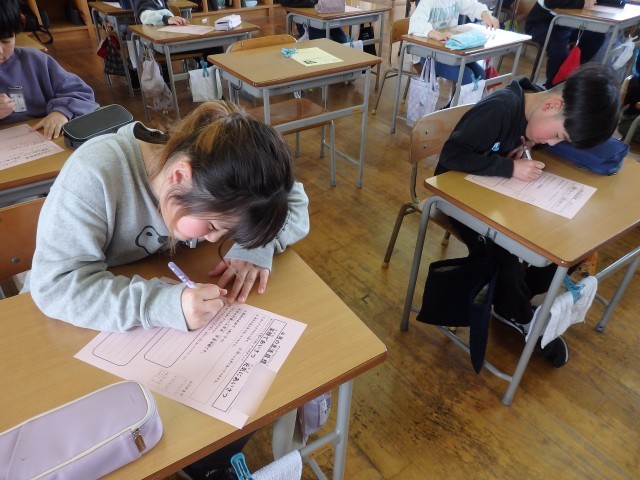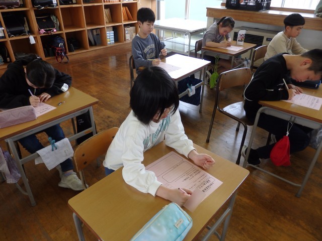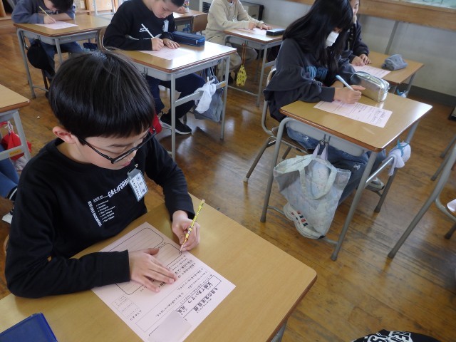 4年生の5時間目は書写の授業でした。硬筆で漢字の書き取りをしていました。4年生で学習した漢字を1つ1つ確かめながら丁寧に書き込んでいました。