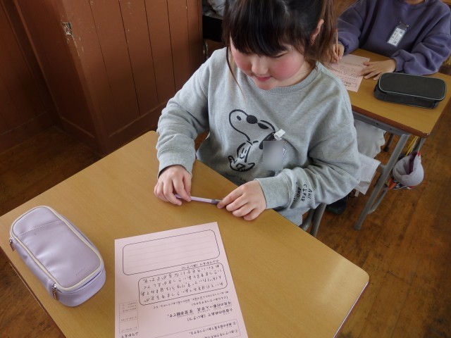 4年生の1時間目は国語の授業でした。20歳になった自分へ手紙を書いています。今日は手紙の他に、今の自分が好きなものの絵を描いたり、クラスのみんなからメッセージを書いてもらったりしていました。手紙と一緒に封筒に入れるのだそうです。10年後が楽しみですね。