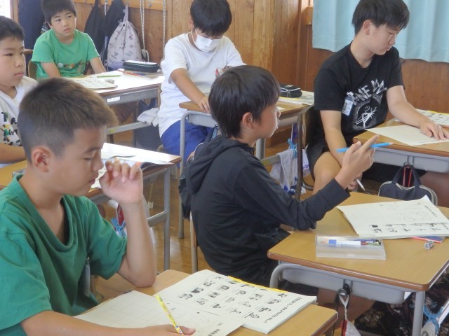 5年生の1時間目は総合の授業でした。昨日、おとといに行った自然教室で見つけた友だちのいいところをしおりに書いていました。たくさんのいいところを見つけて書き込んでいました。全員のいいところを書き上げた子がいました。いいですね!