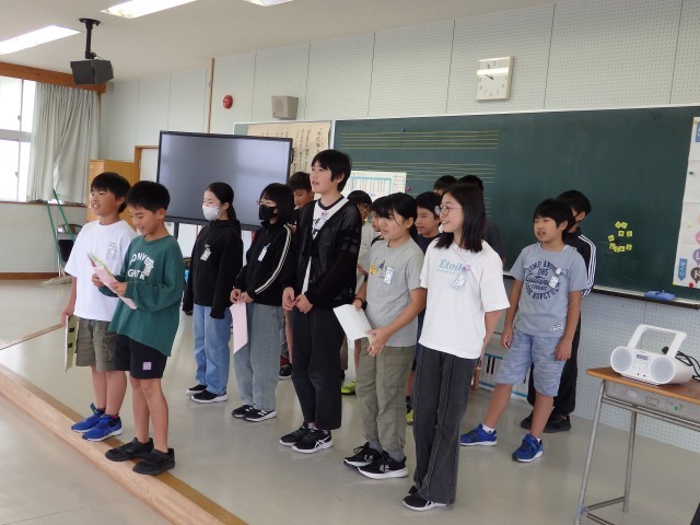 5年生の5時間目は総合の授業でした。学習発表会のシナリオが完成したので、それをもとにして配役を決めました。テーマは「田んぼと米づくり」です。配役が決まったら、同じ役割の人で集まって、誰がどのセリフを言うのかなどを決めました。本番までの練習を協力して取り組んで、5年生らしい発表をしてほしいです。
