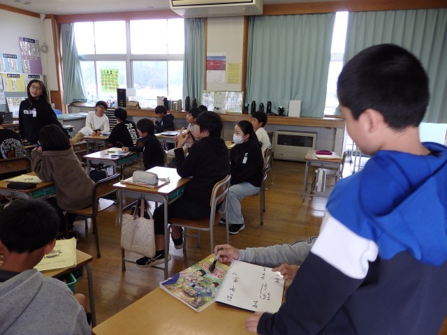 5年生の4時間目は国語の授業でした。「和の文化を受け継ぐ」の学習です。教科書の中で出てきた「根付く」「風情」「感性」などの意味が分からないことばの意味を調べていました。読み方や「ず」なのか「づ」なのかなどを確かめてから、国語辞典を使って自分で調べていきました。語彙を広げるということは、今、南魚沼市全小中学校で取り組んでいる「読む力」の育成には大切なことです。