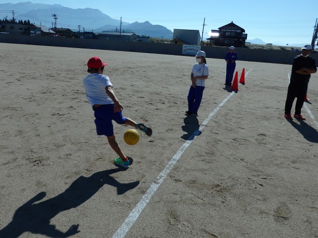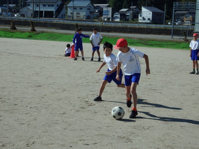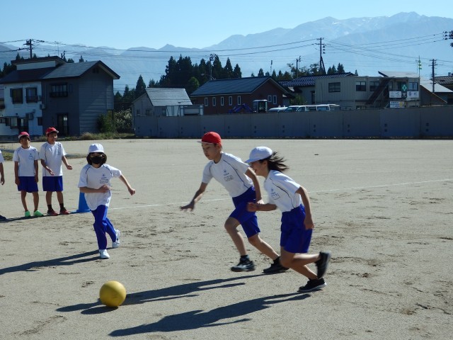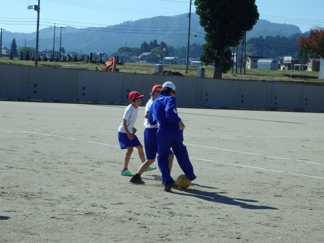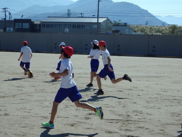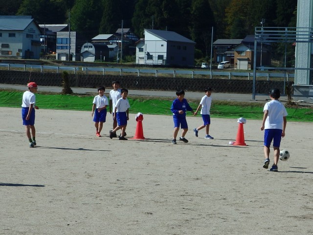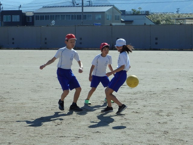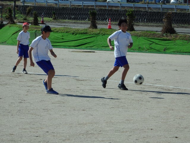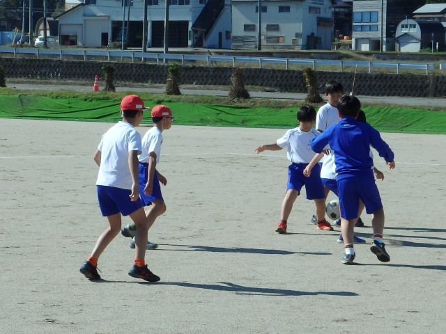 5年生の4時間目は体育の授業でした。サッカーの学習です。4チームに分かれてサッカーの試合をしていました。天気もよく、思いっきりサッカーを楽しめました。