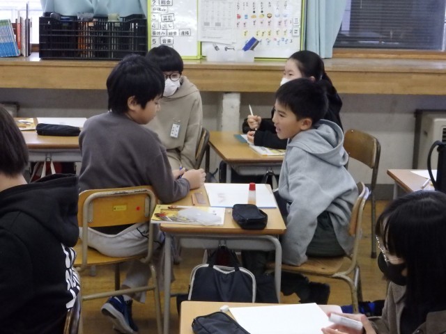 5年生の4時間目は総合の授業でした。5年生は11月25日(火)に湯沢駅で「げき・う米」の販売を行います。今日は米販売のために必要な物は何かを考えました。班で話し合いながら案を出していきました。値札、看板、のぼり旗、チラシ、お買い物袋などの意見が出されました。そして「FMゆきぐにで宣伝する」や「個数制限がいるんじゃないか」などの意見も出されました。