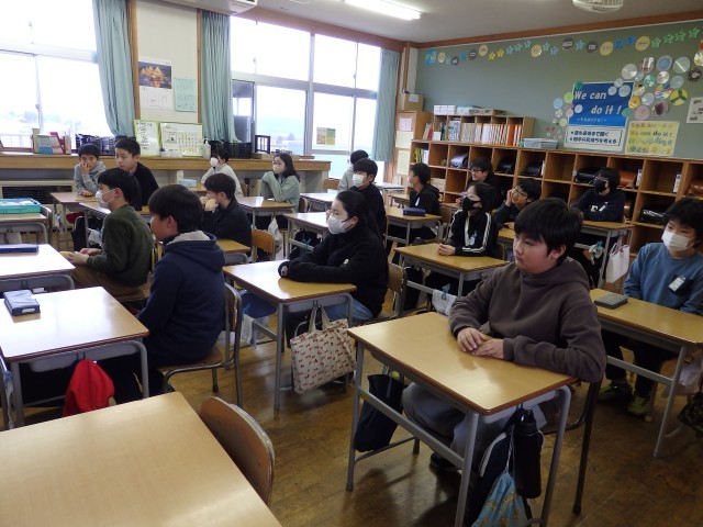 5年生の自然の恵み交換会。豊里小の発表が終わって10分休憩です。休憩時間におおまき小の発表準備をしたり、最後の練習をしたりしていました。