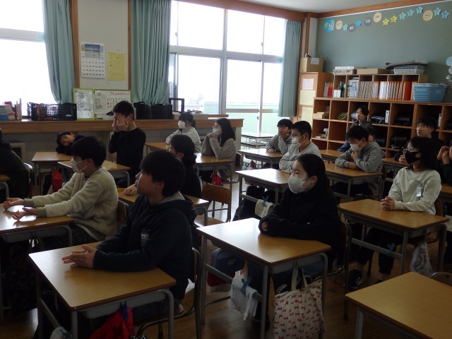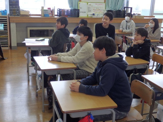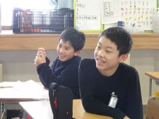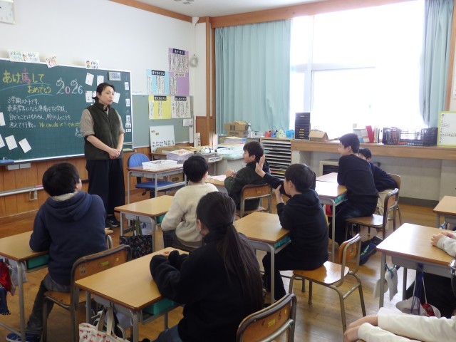 5年生は配り物をして冬休みの生活や1月7日の持ち物などについて確認したり、3学期の係活動を決めたり、4時間目に行うお楽しみ会で何をするか学級委員の子が司会をして話し合ったりしていました。お楽しみ会では「爆弾ゲーム」「何でもバスケット」「全員ババ抜き」をやることに決まりました。