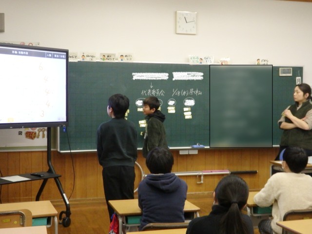 5年生の3時間目です。3学期に全校を巻き込んで行うイベントについての話し合いをしていました。5年生が全校のリーダーとなって、準備や運営、下学年の子たちへの指導を行います。このイベントを境にして、おおまき小学校での全てのリーダー的な役割が6年生から5年生へと引き継がれます。リーダーとしての責任を自覚して、立派なリーダーになってくれることを期待しています。頼むぞ、5年生!