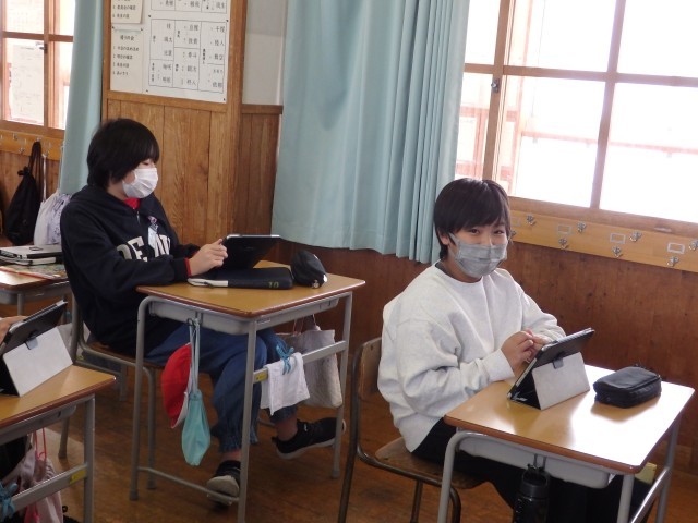 5年生は配り物をして冬休みの生活や1月7日の持ち物などについて確認したり、3学期の係活動を決めたり、4時間目に行うお楽しみ会で何をするか学級委員の子が司会をして話し合ったりしていました。お楽しみ会では「爆弾ゲーム」「何でもバスケット」「全員ババ抜き」をやることに決まりました。