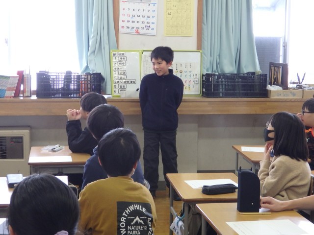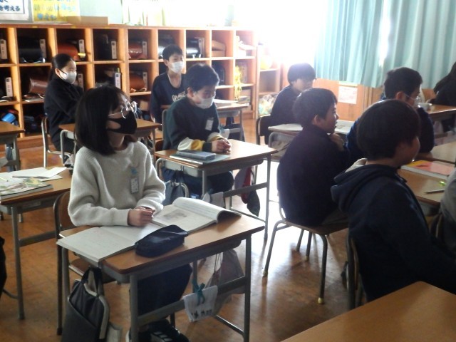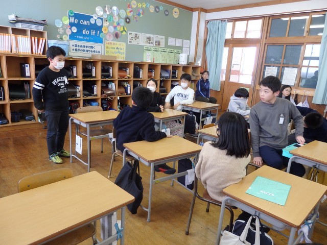 5年生の3時間目です。3学期に全校を巻き込んで行うイベントについての話し合いをしていました。5年生が全校のリーダーとなって、準備や運営、下学年の子たちへの指導を行います。このイベントを境にして、おおまき小学校での全てのリーダー的な役割が6年生から5年生へと引き継がれます。リーダーとしての責任を自覚して、立派なリーダーになってくれることを期待しています。頼むぞ、5年生!