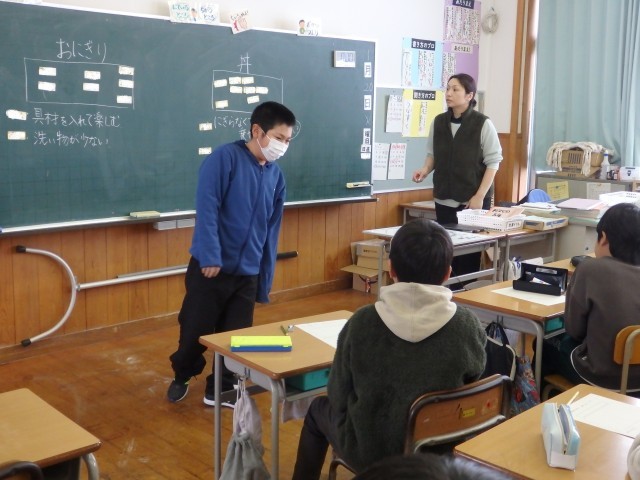5年生の5,6時間目は家庭科の授業でした。「激・う米の活用」について、先週、【丼かおにぎりか】で話し合っていましたが、おにぎりになったようです。ただのおにぎりではなく、『ベーコンとキムチのおにぎり』、『ツナマヨコーンのおにぎり』、『キムチと韓国のりを具にして鮭フレークを混ぜたご飯のおにぎり』、『俵型でチーズ&ベーコンを巻いた飴色タマネギ&コーンのおにぎり』、そして『あんこが入ったきなこをまぶしたおにぎり』と個性派のおにぎりばかりでした。