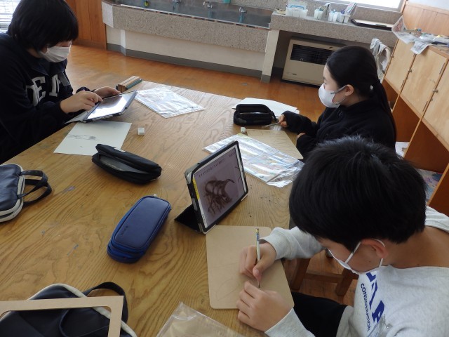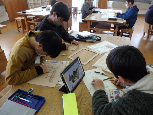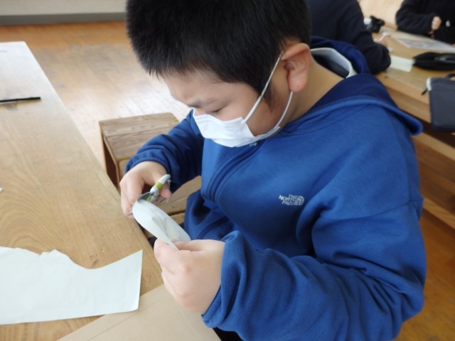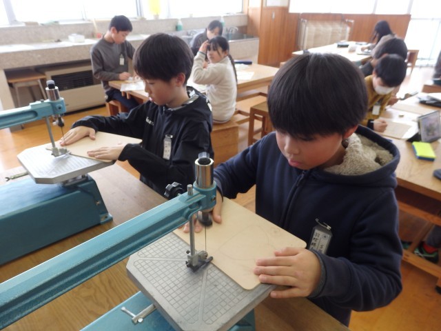 5年生の5時間目は図工の授業でした。「切り分けた形から何つくる?」の学習で、木のパズルを作ります。1枚の絵を電動のこぎりでカットして、パズルにします。1人、絵ではなく自分の名前を漢字で書き、その名前の部分をくり抜いている子がいました。字も習字で書いたような毛筆体になっています。電動のこぎりで切り抜く技術はまさに職人技!いつの間にか周りに人だかりでき、口をあんぐり開けて見ていました。