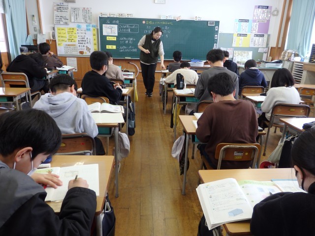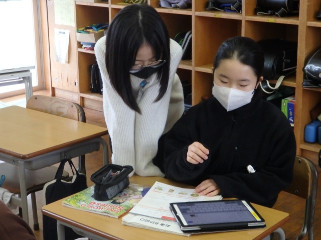 5年生の3時間目は算数の授業でした。2つに分かれて「正多角形と円」の問題プリントに取り組みました。少人数で取り組みますので、分からないところはじっくり先生に教えてもらえます。プリントをやり終えた子はミニティーチャーとして困っている子に教えに行きました。