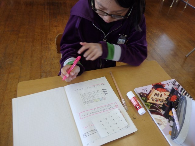 5年生の4時間目は学活の授業でした。係ごとに集まって係のポスターを作っていました。役割分担を話し合ったり、みんなでポスターを書いたりと協力して取り組んでいました。
