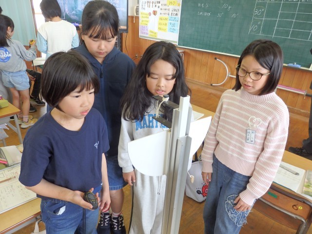 5年生の4時間目は総合の授業でした。「激・う米」をみんなで分け合っていました。収穫した「激・う米」をこれまで調理実習や学習参観で使ったり、学習発表会でおにぎりにして配付したりしてきました。今日は残った「激・う米」をみんなで分け合います。班ごとにはかりで量を量りながら仲良く分かち合いました。