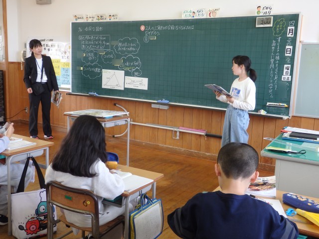 5年生の4時間目は国語の授業でした。「資料から考えたことを発表しよう」の学習です。これまでの授業で「食品ロス」についての資料を見て、考えたことをまとめたり、発表で使うスライド資料を作ってきました。今日はいよいよ発表です。まずは4人グループになって1人ずつ発表していきました。同じ資料でも1人1人視点が違っていて個性が出ているなあと感じました。1人の発表が終わるごとに拍手している姿がとてもよかったです。