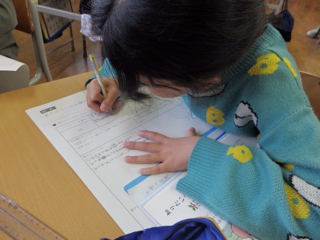 5年生の1時間目は国語の授業でした。「知りたいことを聞きだそう」の学習です。委員会の活動について6年生にインタビューをする予定です。今日はどの委員会にどんなことを聞くか考えました。委員会を1つ選び、質問を3つ考え、インタビューの構想用紙にまとめました。「どうやったらかまずに放送できますか」「みんなのあいさつがよくなるためにはどうしたらいいと思いますか」「委員会で工夫していることは何ですか」など、具体的に質問を考えていました。