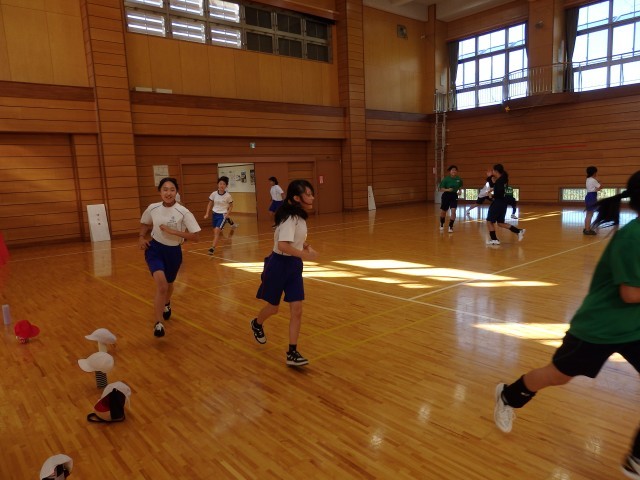 6年生の5時間目は体育の授業でした。明日の親善陸上大会に向けての事前指導と最終調整を行いました。まずは教室で明日の日程やテントの場所、その他注意することなどを確認しました。その後、体育館に行って最終調整です。スタートダッシュの練習をしたり、2チームに分かれてリレーを行いました。リレーはほぼ互角の勝負でした。「もう1回!」という子どもたちからのリクエストがあり、2回目も行いました。