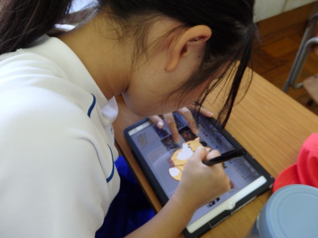 6年生の4時間目は国語の授業でした。今日から「永遠のゴミ プラスチック」という評論文の学習です。まずはプラスチックについて、自分が知っていることや調べて分かったことをiPadのオクリンクプラスというアプリを使ってまとめていきました。「プラスチックのメリットとデメリット」「プラスチックでできている製品」「なぜプラスチックで作られているのか」「マイクロプラスチックとは」などについてスライドにしてまとめていきました。さすが6年生ですね、画像の加工や文字入力などもサクサクと進めていました。