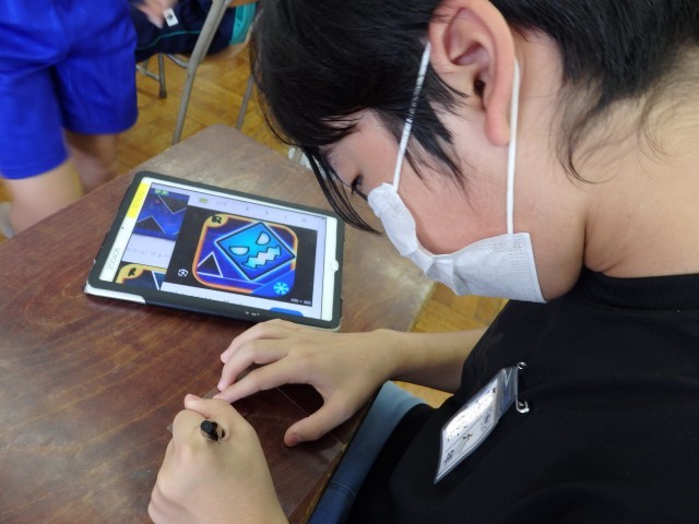 6年生の1時間目は学活の授業でした。学習発表会の準備です。発表内容ごとに分かれたグループに分かれて、シナリオを作っていました。自分たちで意見を出し合い、誰がどのセリフを言うのかも相談しながら作っていました。後半はiPadで作ったシナリオをグループで共有して練習したり、小道具を作ったりしていました。