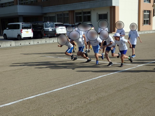 5,6年生の5時間目は合同で体育の授業でした。持久走大会に向けての練習でタイムを計りました。まずは女子からスタートしました。