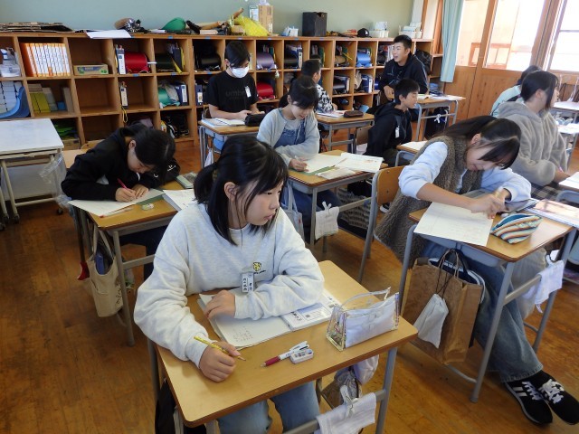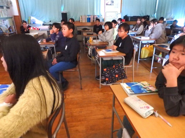 6年生の5時間目は学活の授業でした。学習発表会のステージ練習です。自分たちの発表の練習をしたあと、閉会式での「終わりのことば」の練習も行いました。リコーダーの演奏をバックに、これまで頑張ってきたことや苦労したことなどについて語っていきます。6年生が最後をしっかり締めてくれます。