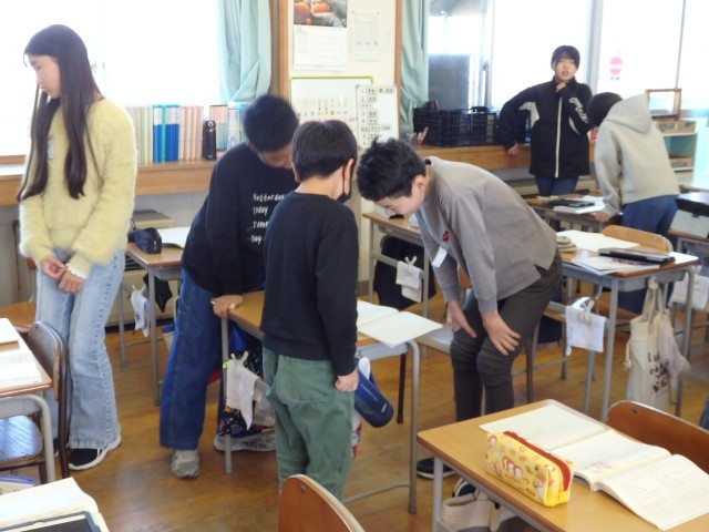 6年生は午後から八海中学校で部活動体験です。楽しみですね。給食後、帰り支度をして出発しました。終了後は最寄りのバス停でバスを下車して帰宅します。