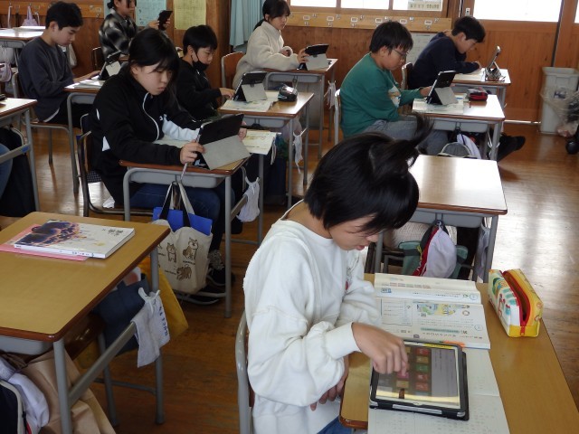 6年生の4時間目は社会の授業でした。江戸時代の文化や学問についての調べ学習をしていました。杉田玄白、本居宣長、伊能忠敬、解体新書などについて教科書や資料集を読み込んで、ノートにまとめていきました。書かれていることをそのまま書くのではなく、要約して自分のことばでまとめることが大切です。まとめ終わったら、インターネットでさらに調べていきました。