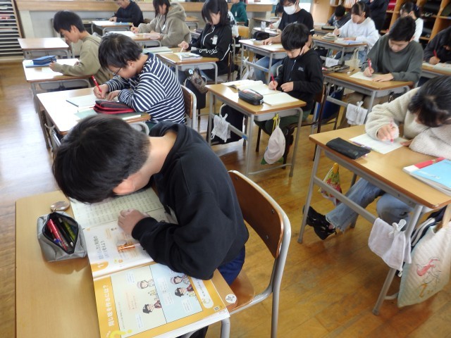 6年生の2時間目は学活の授業でした。昨日の学習発表会リハーサルの動画を見て、改善点を確認していました。合奏でのテンポや音を伸ばす長さ、セリフを言うときの声量や声の出し方などを確認していました。指揮を担当する子が動画を見ながら指揮の練習をしていました。明日はいよいよ小学校生活最後の大きな行事です。立派にトリを務めてくれることを期待しています!