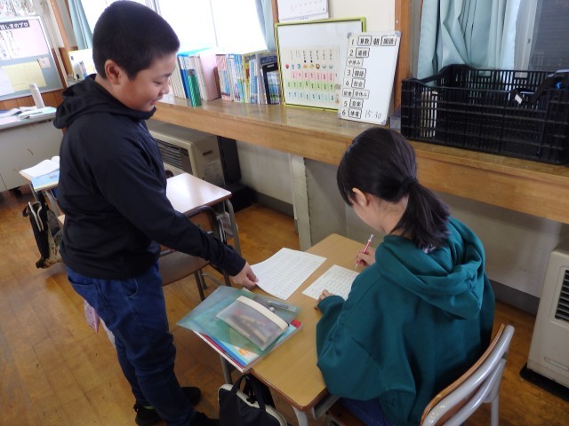 体育館にいると外の方から何やら歓声が。窓を開けてみると6年生が四十日保育園の子どもたちとオニごっこをしていました。手を抜いてあげてゆっくり走ったり、思いっきり走って逃げたりしながら一緒にオニごっこを頼んでいました。