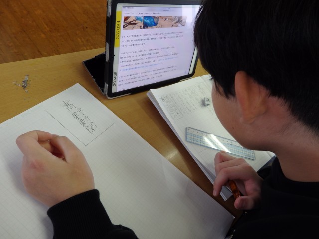 6年生の4時間目は国語の授業でした。今日から「永遠のゴミ プラスチック」という評論文の学習です。まずはプラスチックについて、自分が知っていることや調べて分かったことをiPadのオクリンクプラスというアプリを使ってまとめていきました。「プラスチックのメリットとデメリット」「プラスチックでできている製品」「なぜプラスチックで作られているのか」「マイクロプラスチックとは」などについてスライドにしてまとめていきました。さすが6年生ですね、画像の加工や文字入力などもサクサクと進めていました。