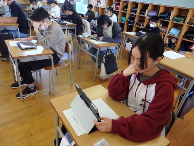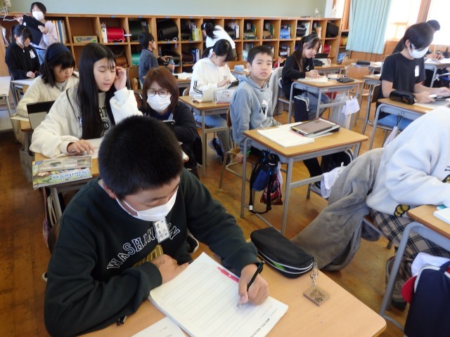 6年生の4時間目は国際科の授業でした。28日に行う国際交流会の準備です。「南魚沼市のおすすめ」を3つ紹介します。スピーチ原稿ができあがった人から発表の練習をしました。1人で何度も読んだり、ペアになってお互いの発表を聞き合ったりして練習をしました。