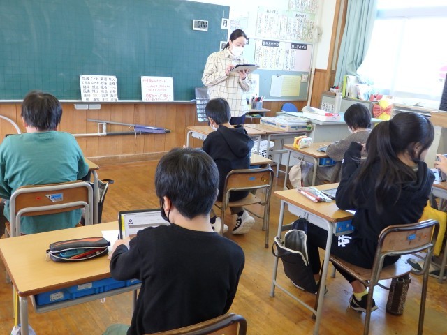 6年生の2時間目は国際科の授業でした。「自分が行きたい国」と「そこで何がしたいのか」などについて英語でやり取りをしました。最後に何人かの人たちにみんなの前でALTの先生とのやり取りを発表してもらいました。目線もジェスチャーもバッチリでした。
