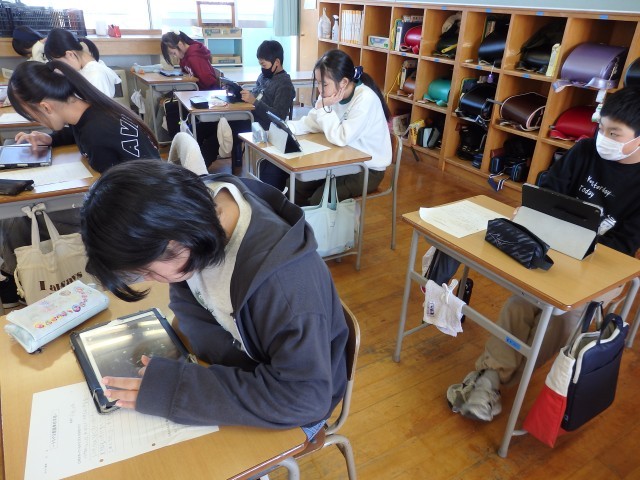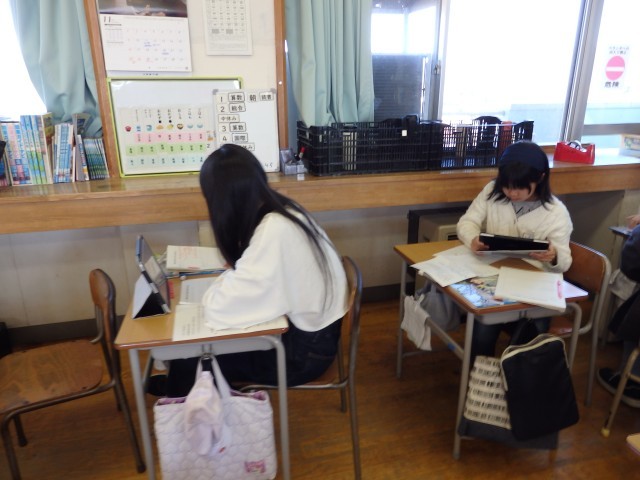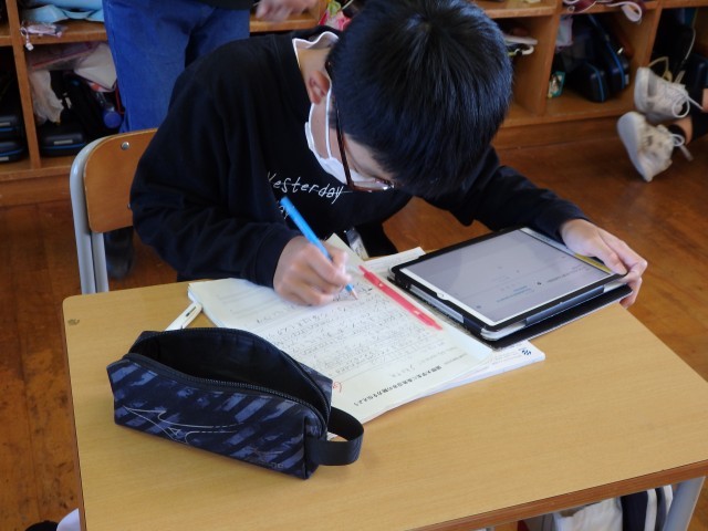 6年生の4時間目は社会の授業でした。江戸時代の文化や学問についての調べ学習をしていました。杉田玄白、本居宣長、伊能忠敬、解体新書などについて教科書や資料集を読み込んで、ノートにまとめていきました。書かれていることをそのまま書くのではなく、要約して自分のことばでまとめることが大切です。まとめ終わったら、インターネットでさらに調べていきました。