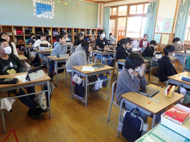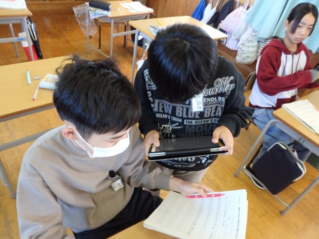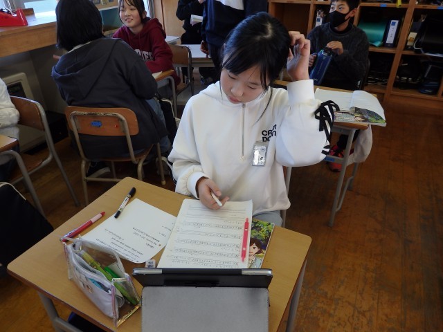 6年生の2時間目は学活の授業でした。昨日の学習発表会リハーサルの動画を見て、改善点を確認していました。合奏でのテンポや音を伸ばす長さ、セリフを言うときの声量や声の出し方などを確認していました。指揮を担当する子が動画を見ながら指揮の練習をしていました。明日はいよいよ小学校生活最後の大きな行事です。立派にトリを務めてくれることを期待しています!