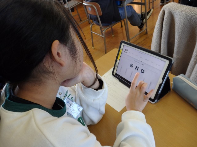 6年生の5時間目は国際科の授業でした。前半は前の授業の続きで「行きたい国」についての紹介スピーチの動画撮影をしました。撮影が終わりiPadのオクリンクで先生に送信した人から他の人のスピーチ動画を視聴しました。後半は11月28日に行う国際大学生との国際交流会に向けての学習です。「行きたい国」のスピーチは一時中断し、今日から「南魚沼市のおすすめBEST3」を紹介するための学習になります。1学期に学習したLesson 2の内容を膨らませて紹介する予定です。1人1人が「南魚沼市のおすすめ」について考え、山、スキー場、スイーツ、ラーメン屋、寿司屋、パン屋などを調べていきました。