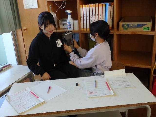 6年生の2時間目は国際科の授業でした。「自分が行きたい外国」についての紹介文とスライドを完成させました。それを使って発表練習です。何も見ないでスラスラ言ったり、ジェスチャーを入れたりできるように練習しました。まずは1人で練習し、言えるようになってきたらペアになって発表し合いました。最後に中間発表として、発表しているところを動画で撮影しました。