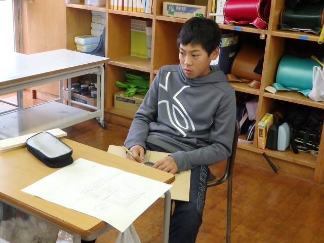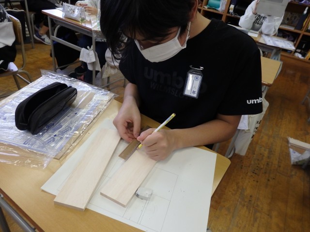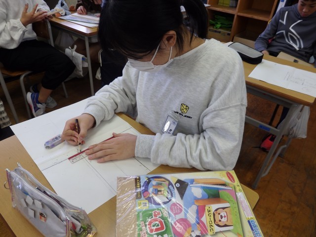 6年生の5時間目は図工の授業でした。複数の木材を使って木工作品を作ります。何を作るか考え、iPadでその物の形を調べたりしながら設計図を書いていきました。スマホやゲーム機のスタンド、棚、ティッシュボックス、小物入れなどをこれから作っていきます。