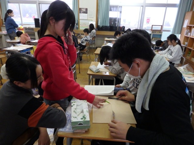 6年生の2時間目は学活の授業でした。学習発表会で使う小道具を作っていました。発表する内容ごとに分かれて作るものを分担し、協力して活動していました。本物そっくりに見える優れものばかりです。