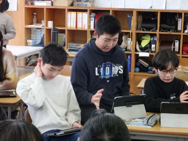 6年生の2時間目は学活の授業でした。3学期の係について、昨日、選出された学級委員の子たちの司会で話し合いを行いました。必要な係と人数が決まったら自分がやりたい係にネームプレートを貼っていきます。人数よりも希望者が多かった係は話し合ったり、ジャンケンしたりして円満に解決しました。係が決まったら、「誰でしょう?」クイズの続きです。「冬休みの宿題を早く終わらせた」「ロボ団に行ってきた」「大晦日は○時まで起きていた」のは誰か探りました。