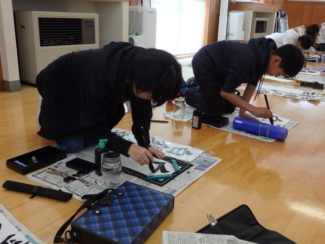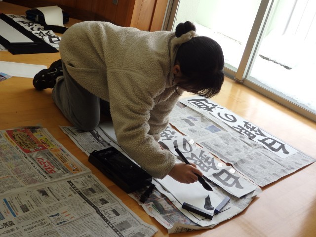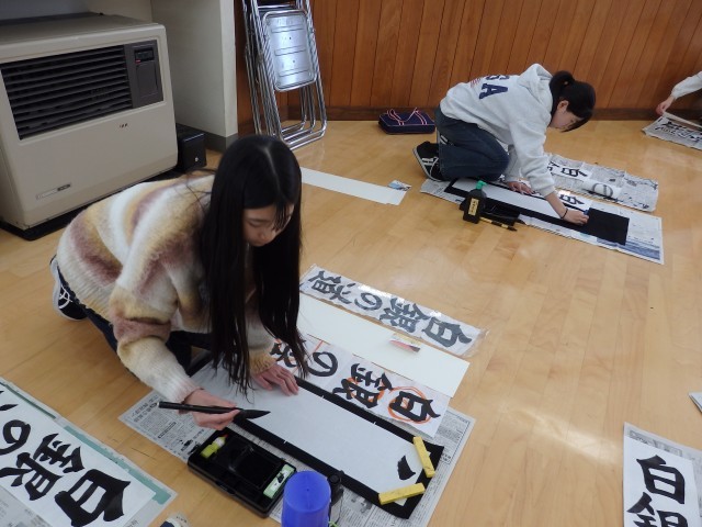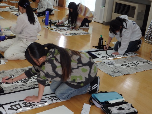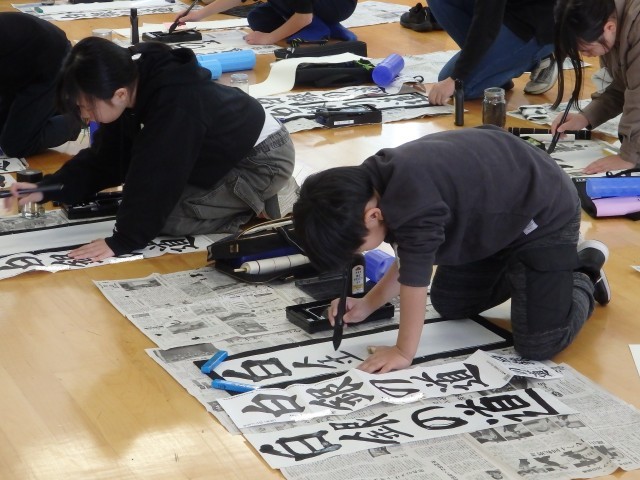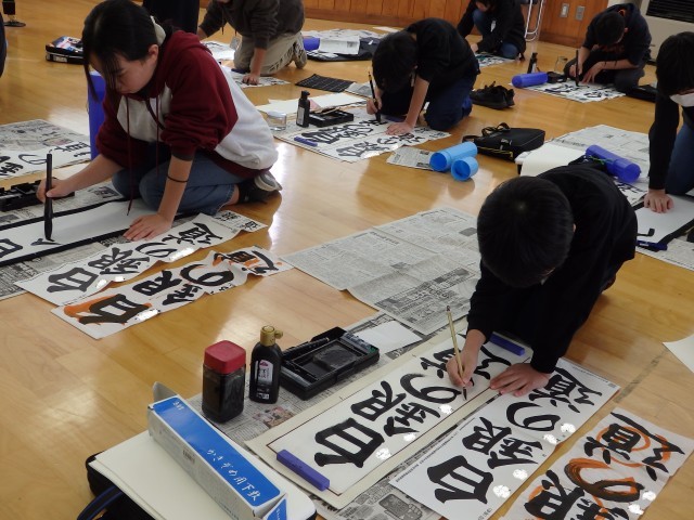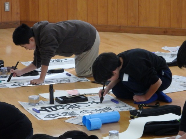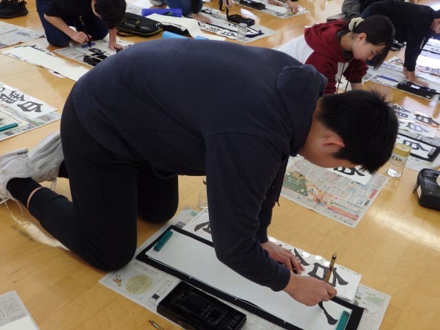 6年生は3時間目に書き初め大会を行いました。みんながとても集中して、一筆一筆を丁寧に書き上げていました。冬休みの練習の成果ですね、上手に書けていました。