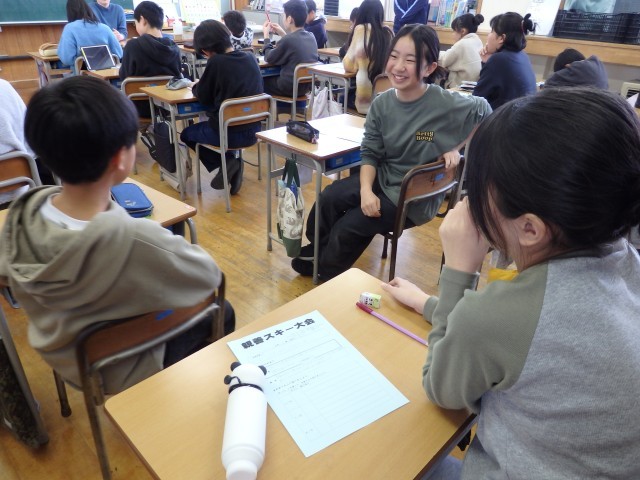 6年生の4時間目は国際科の授業でした。「将来の夢」についての学習です。座席を移動ながらペアを作り、お互いに将来の夢とその理由をたずね合うやり取りをしました。ジェスチャーや相づちなどリアクションをしっかりしている子が何人もいました。