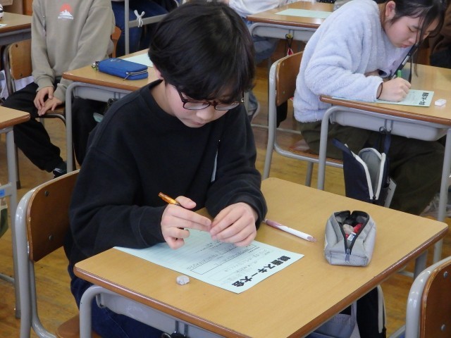 6年生は冬休みの課題やプリント類などが配られたり、お家の人への卒業文集の原稿依頼の手紙を書いたりしていました。原稿をお願いするだけでなく、これまで育ててくれた感謝の気持ちを一生懸命、丁寧に綴っていました。書いているところを見させてもらいましたが、とってもジーンとしてきました。気持ちがこもっていますね。