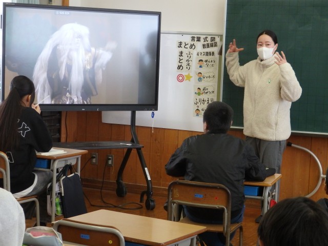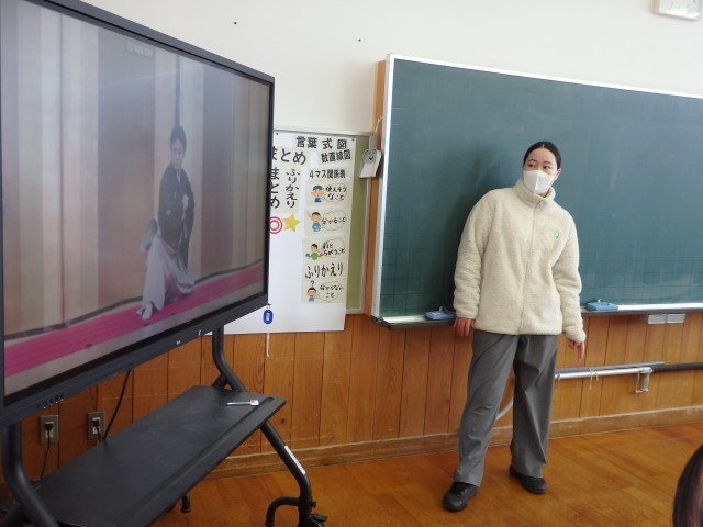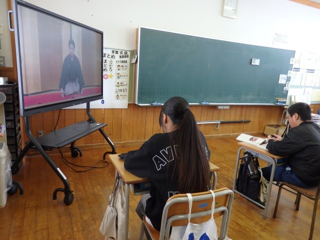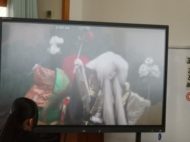 6年生の1時間目は国語の授業でした。「古典芸能」の学習のまとめとして、歌舞伎の動画を視聴していました。最近、映画でかなり話題になっていたこともあってか、じーっと見入っている子どもたちでした。