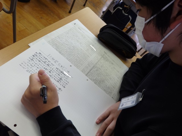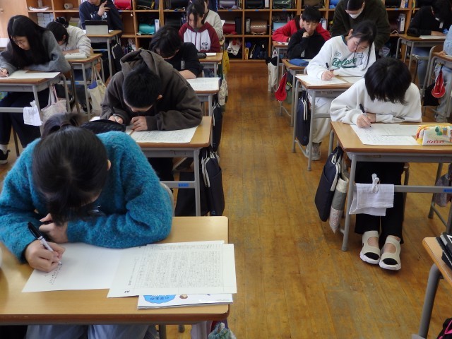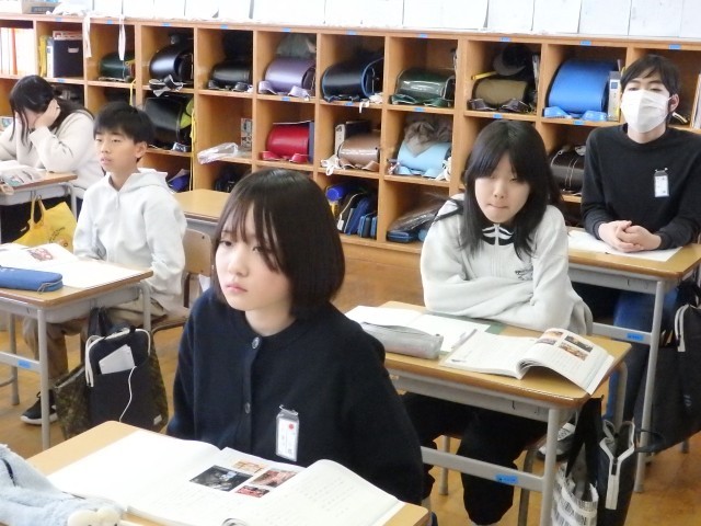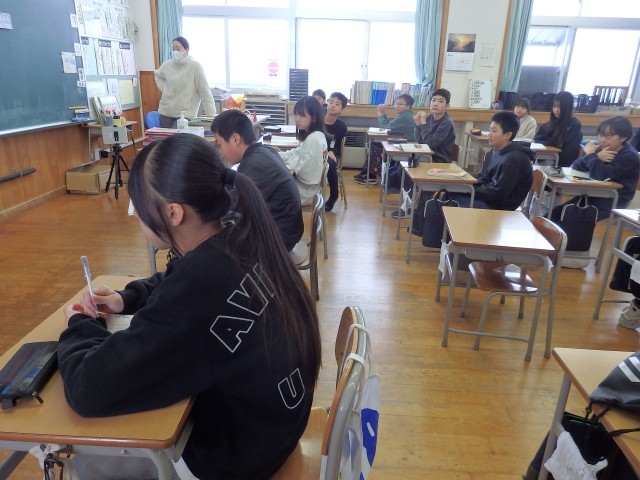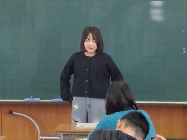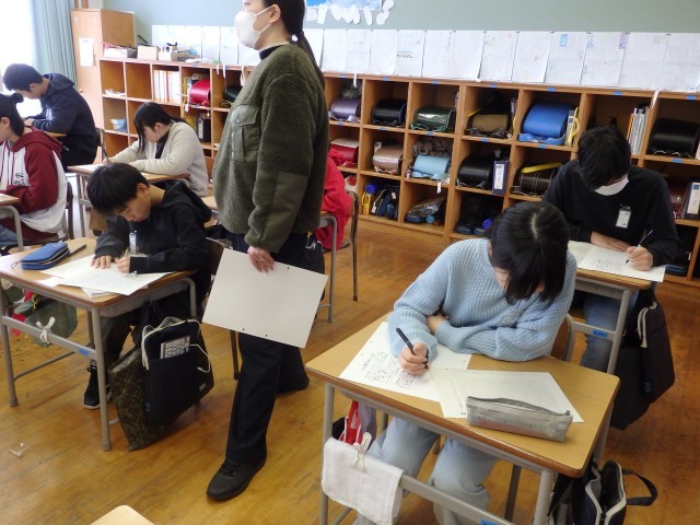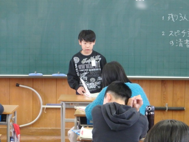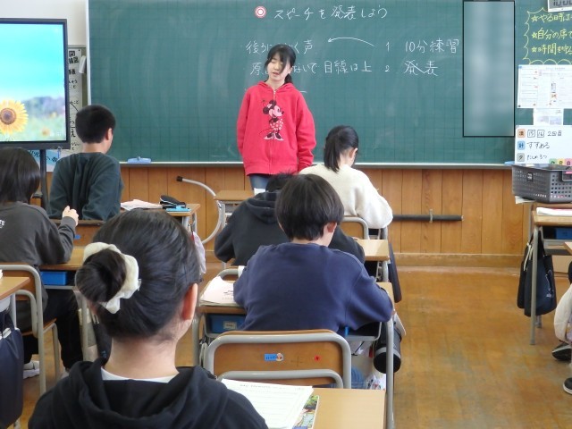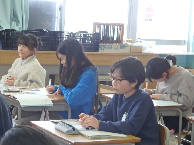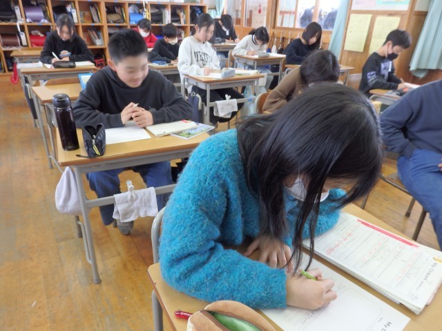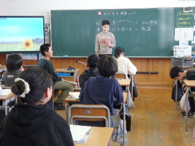 6年生の3時間目です。1月の生活目標「気持ちを込めて元気にあいさつ」に対する自分のめあてを考えました。「スキー授業ではスキー場の人にしっかりあいさつをする」、「通学路で地域の人に元気にあいさつをする」、「『おはようございます』や『ありがとう』だけでなく、いろいろなことばを使ってあいさつをする」、「相手の名前を付けてあいさつをする」など具体的に考えていました。「あいさつ世界一!」を目指して、まずは学校のリーダーである6年生からお手本を見せてほしいです。