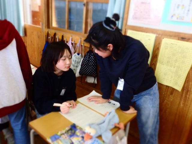 6年生の2時間目は、地域の方から講師として来ていただき書き初めの指導をしていただきました。自分が書いた字を見ていただき、さらによく書けるポイントを朱書きで丁寧に教えていただきました。めったにない絶好の機会ですので、1枚書くごとに見ていただきご指導をいただきました。講師の先生、ご多用の中ありがとうございました。