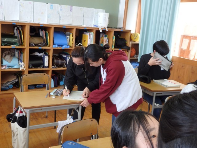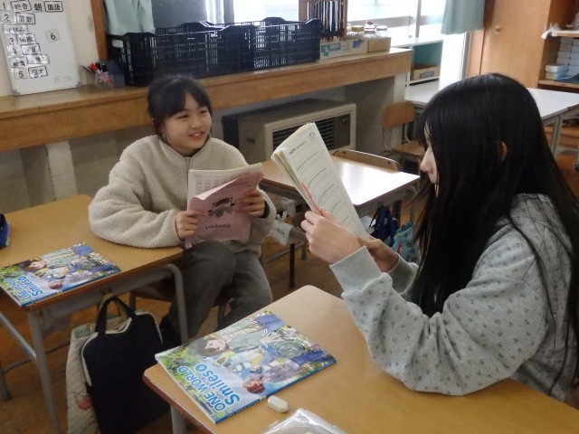 6年生の4時間目は国際科の授業でした。「将来の夢」についての学習です。座席を移動ながらペアを作り、お互いに将来の夢とその理由をたずね合うやり取りをしました。ジェスチャーや相づちなどリアクションをしっかりしている子が何人もいました。